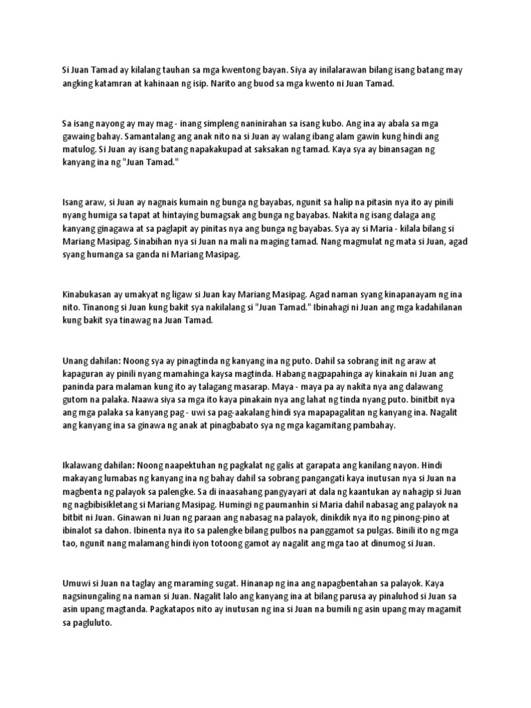 Si Juan Tamad Ay Kilalang Tauhan Sa Mga Kwentong Bayan Pdf