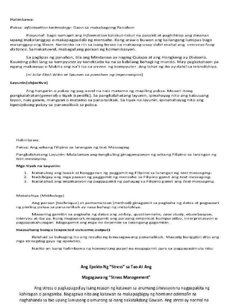 Bigyang kahulugan ang suliraninng pananaliksik. Kahulugan at Katangian ng Wikang Filipino. Bahagi ng konseptong papel.