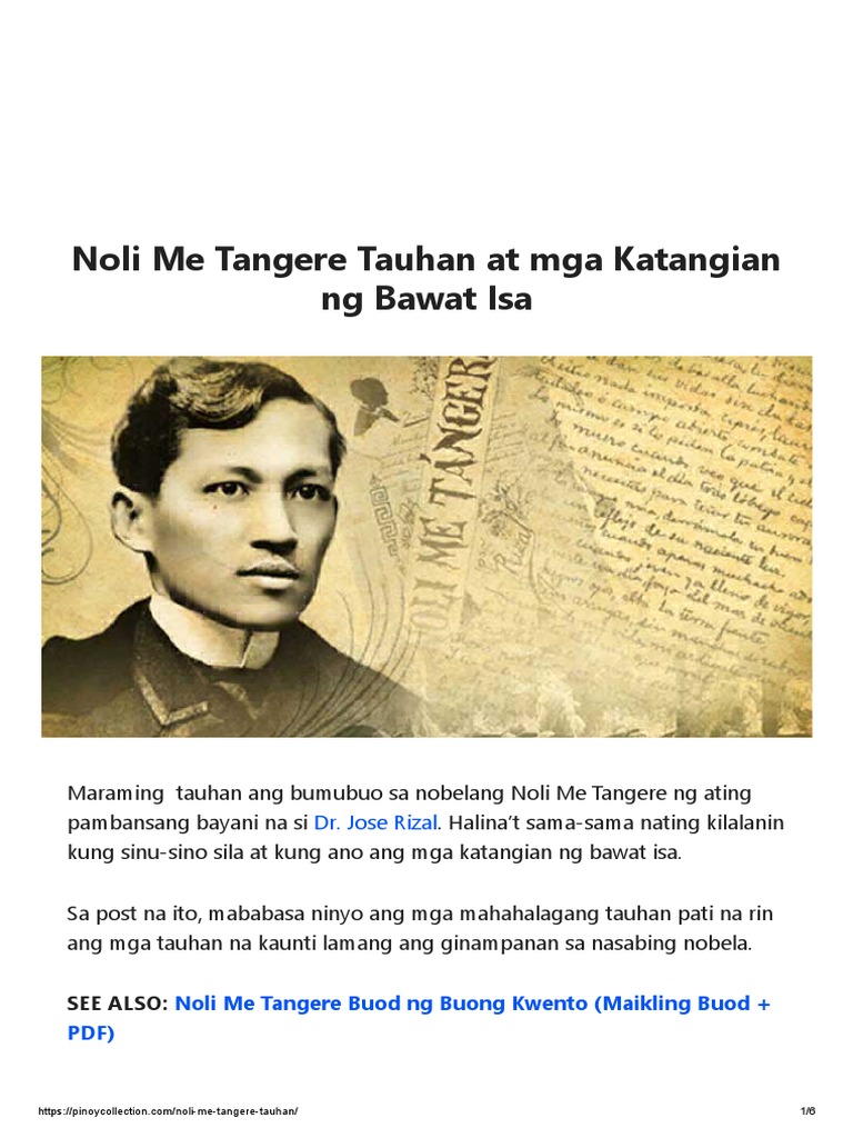 Noli Me Tangere Tauhan At Mga Katangian Ng Bawat Isa Pdf